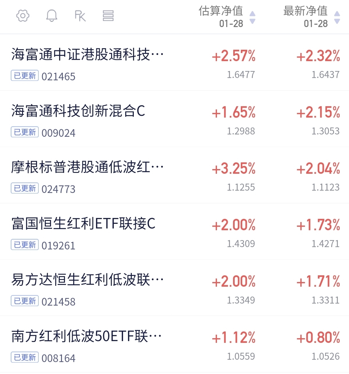 $摩根标普港股通低波红利ETF发起式联接C$ 2.04%。