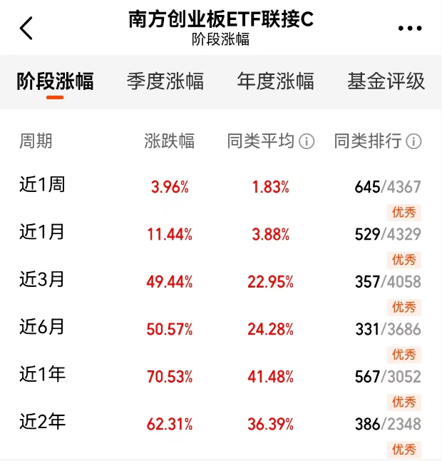 比较过几个跟踪创业板的指数基金,发现$南方创业板ETF联接A$(002656)在费率上确实有点优势,长期累积下来能节省不少。它的主要资产都投资在对应的ETF上,紧密跟踪创业板指数。像昨天创业板指大涨,这个基金的净值也跟着上去了。这种强关联性让我们能比较纯粹地表达对创业板指数的看法。近三个月近50%的涨幅,确实体现了创业板在高弹性市场里的爆发力。#牛市旗手回归?券商板块异动拉升#