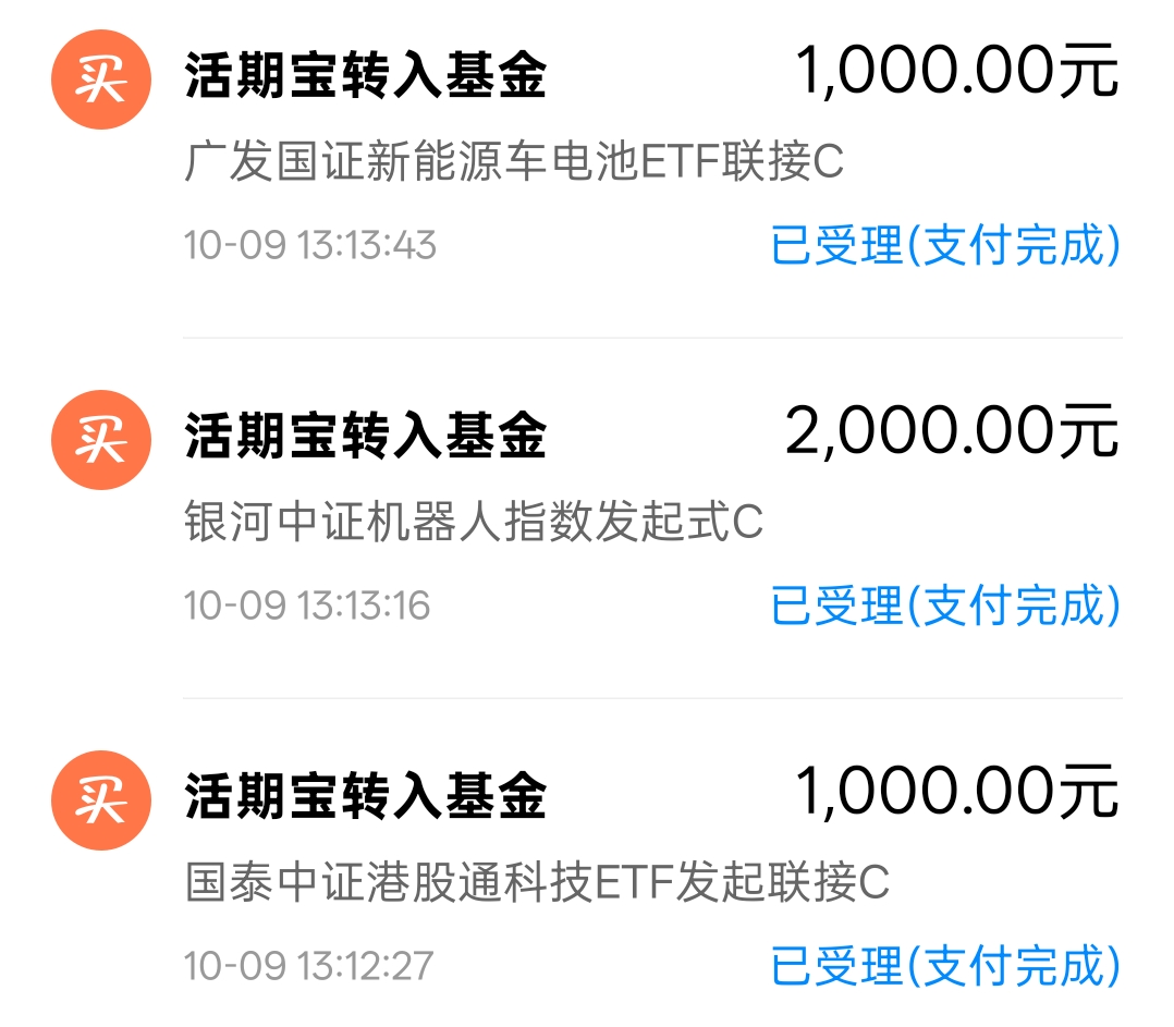 今天加仓电池、港股科技、机器人,无卖出操作,所有中线标的继续持有,下步准备减仓防守型标的,继续加仓权益