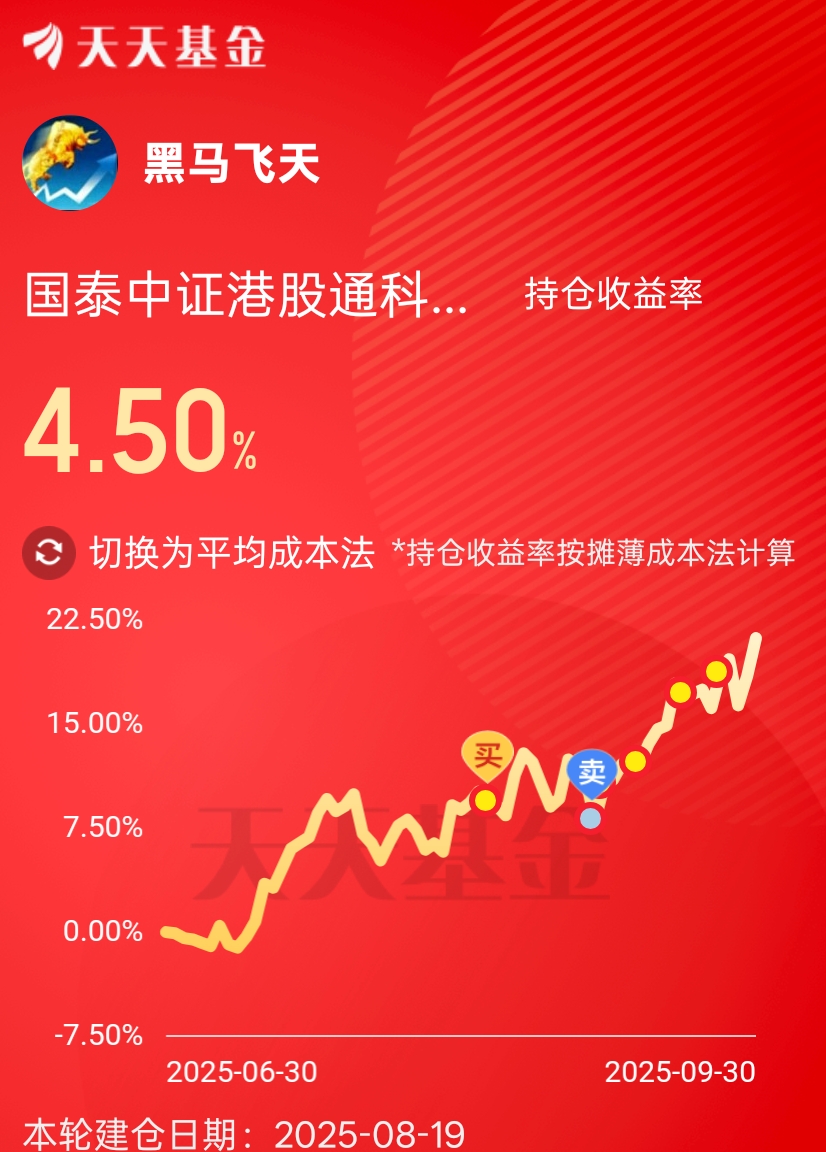 中线来看,港股科技仍大有潜力,未来还有潜在爆发机会。趁其还没有大涨,加仓一笔中线持有的$国泰中证港股通科技ETF发起联接C(OTCFUND|015740)$,这只产品既涵盖了AI巨头,也涵盖创新药龙头,受益于两大高景气赛道的共同驱动,中线很看好。