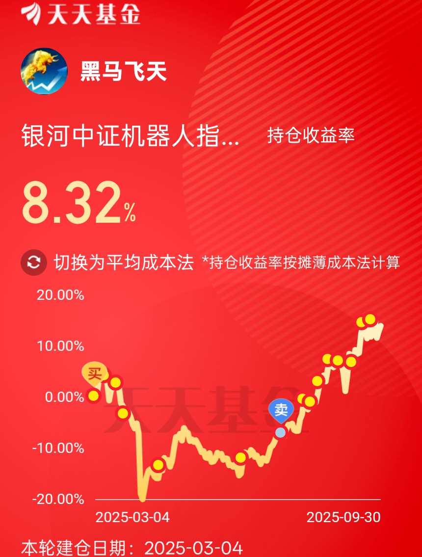 $银河中证机器人指数发起式C(OTCFUND|021302)$投了200多天,目前浮盈8个多点,今天按计划加仓一笔。