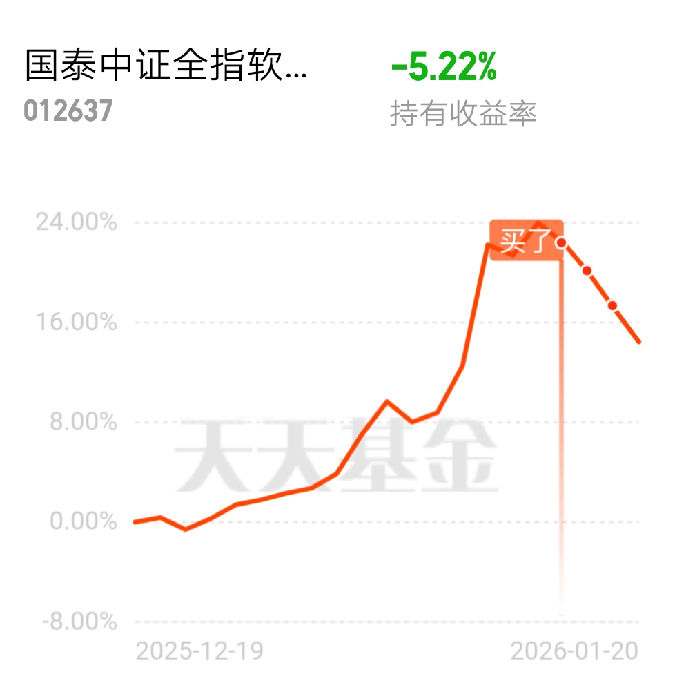 高位买入就要慢慢买,绝对不能梭哈,采用倒金字塔模式加仓,就是翻倍加仓,降低成本快,但是今天没翻倍跟上次一样多,看还没止跌样子。$国泰中证全指软件ETF联接C$