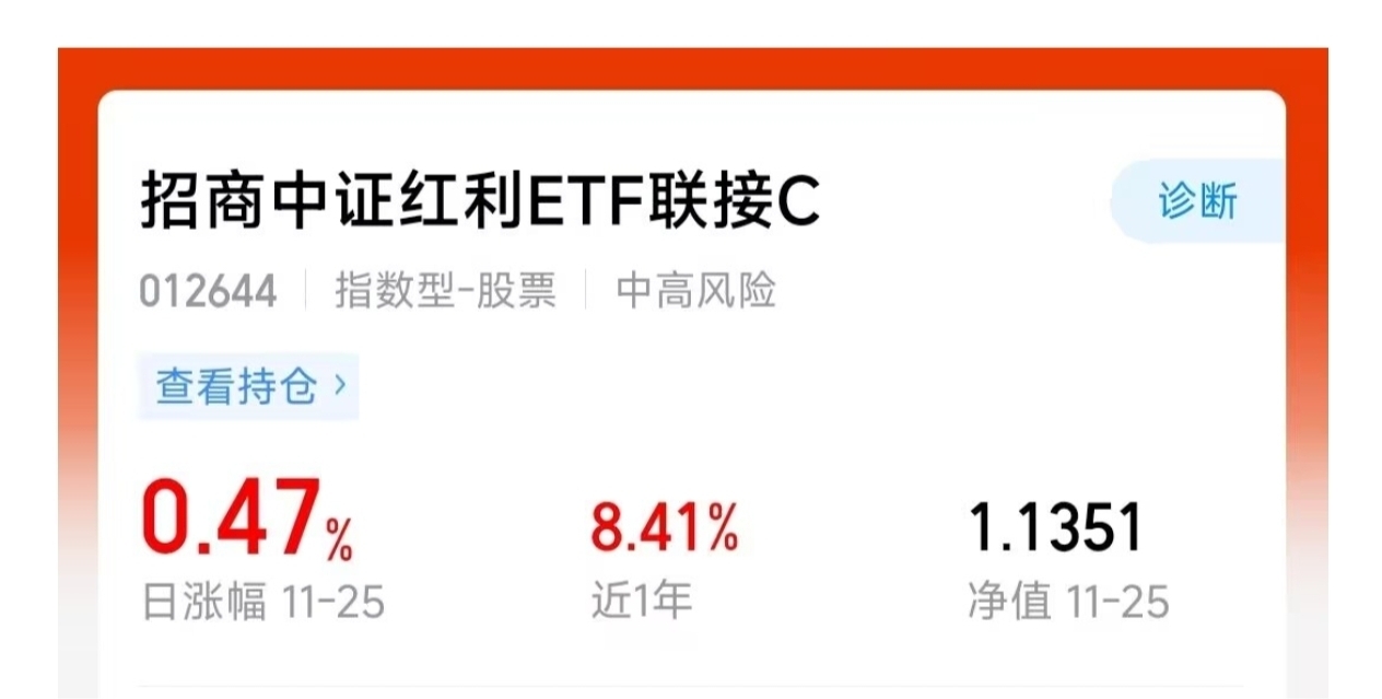 现在市场波动比较大,我觉得配置些稳健的品种挺有必要。招商中证红利ETF联接C(OTCFUND|012644)这只基金主要投资高股息股票,比较适合现在的市场环境。它的持仓都是分红比较稳定的公司,在市场震荡的时候能起到一定的防守作用。我准备适当配置一些,用来平衡组合的风险。