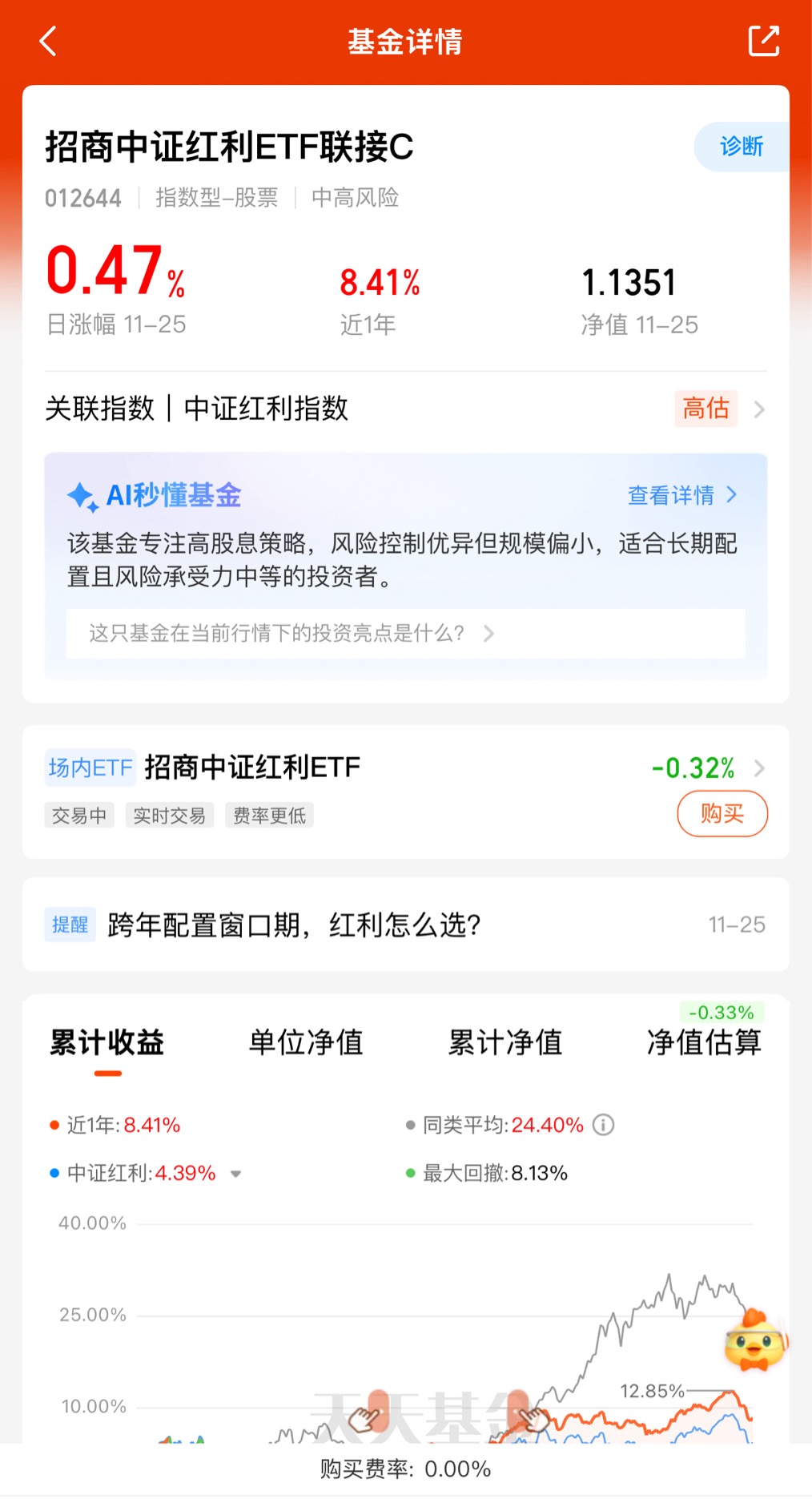 在当前市场环境下,低筹码、高股息特征使红利资产具备较强防御性,通过该基金参与布局,既能把握政策导向下的结构性机会,又能争取稳健股息收益,是当前市场环境下的较优配置选择。