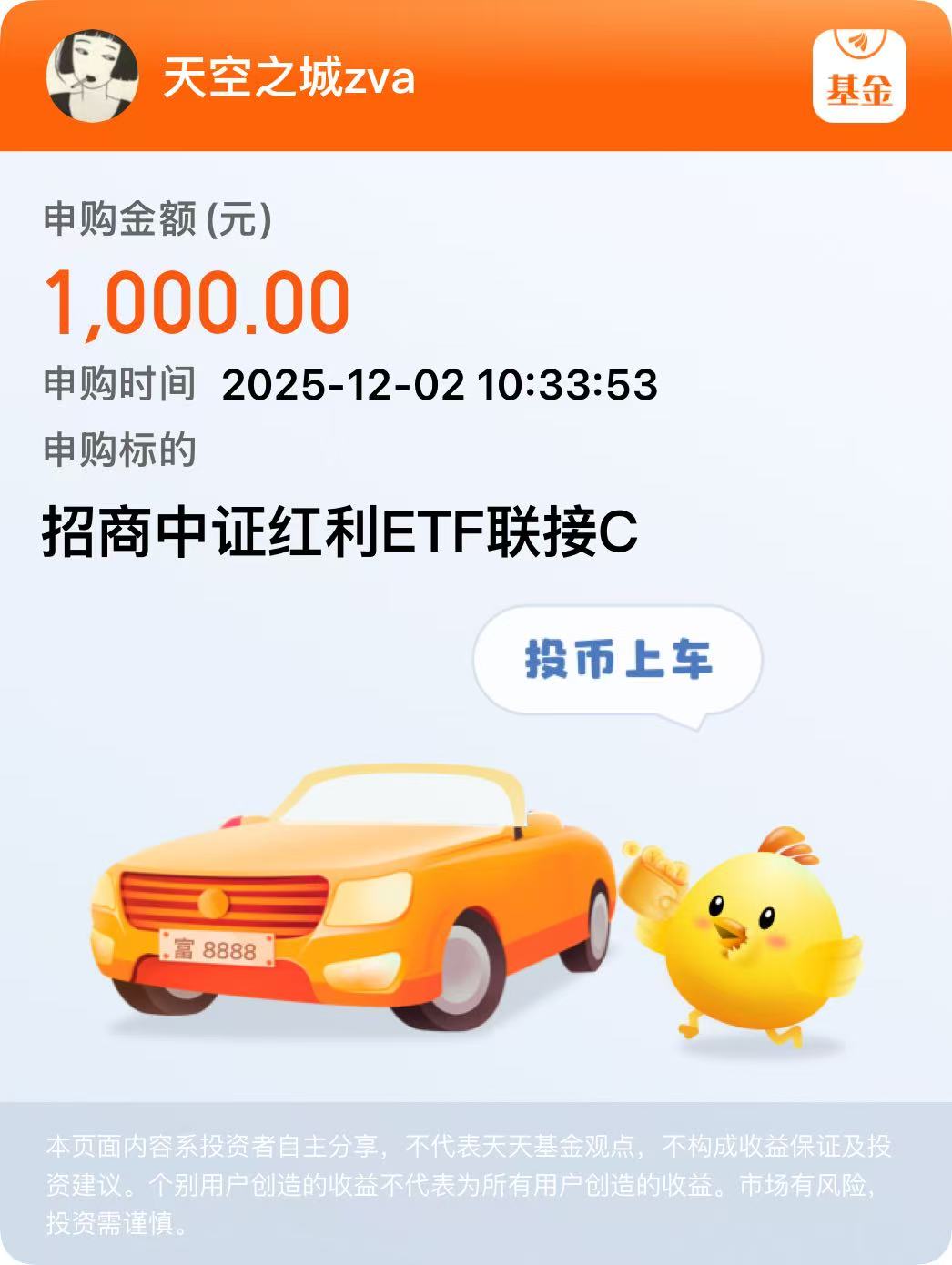 海外美债长端利率及美元指数回落,对立资产前期调整或较为充分,高股息板块配置价值较11月边际回落,当前安全边际更高一些。配置性价不错;我也上车了。$招商中证红利ETF联接C(OTCFUND|012644)$