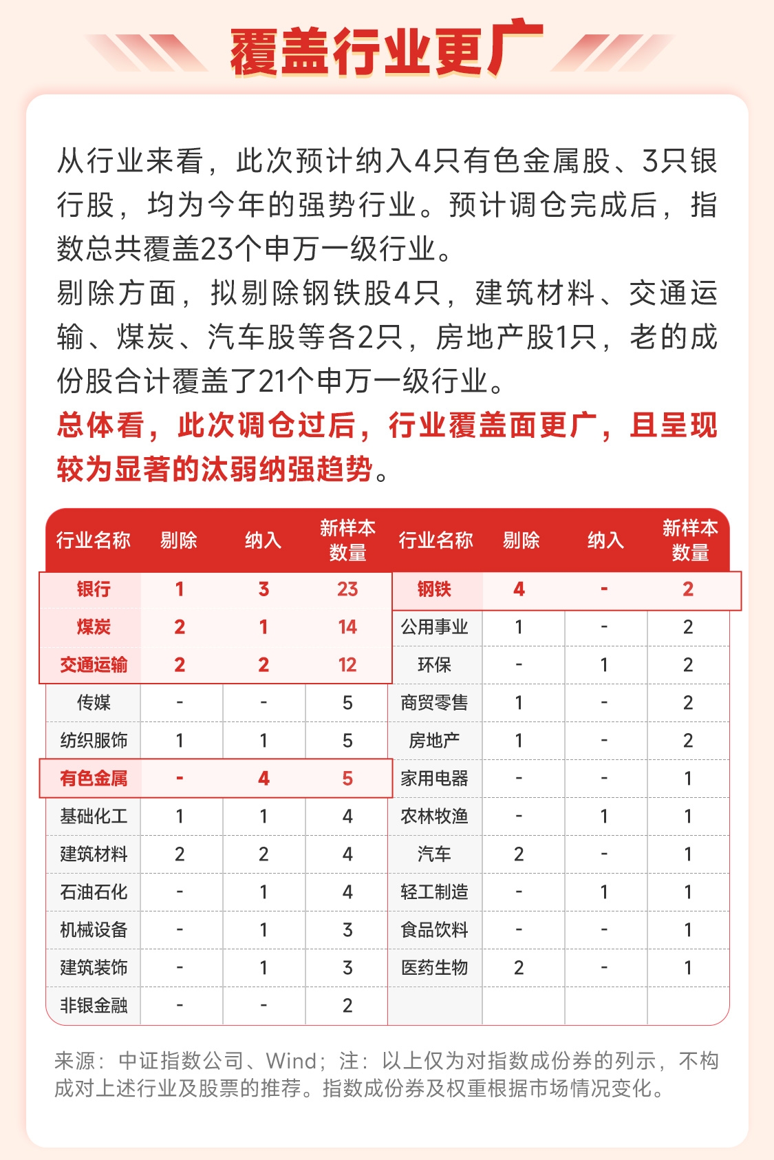 1⃣剔钢铁纳有色金属,申万一级行业升至23个,指数行业覆盖面更广。
