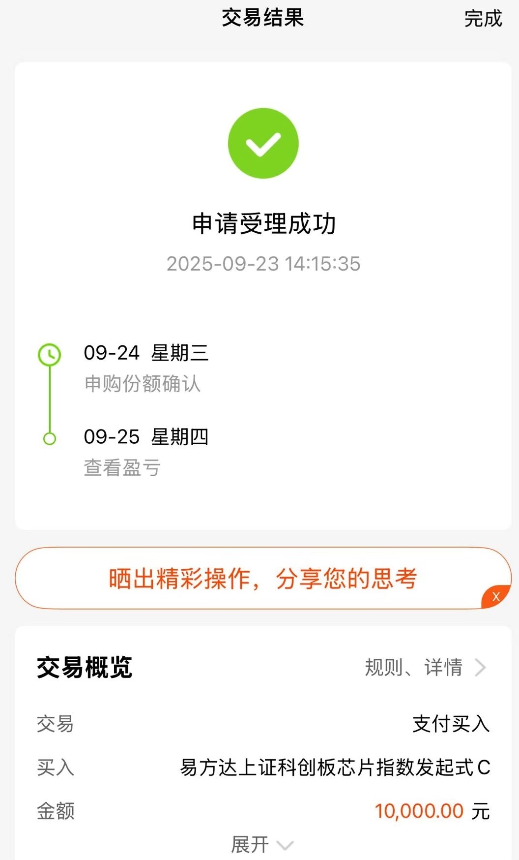 今天科创芯片盘中跌了,尾盘翻红,这时候加仓挺靠谱$易方达上证科创板芯片指数发起式C$