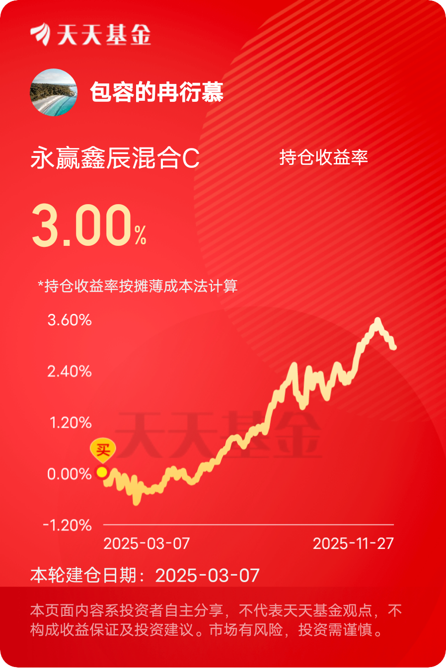 $永赢鑫辰混合C$我也看好这个攻守兼备基金,适合拿长期