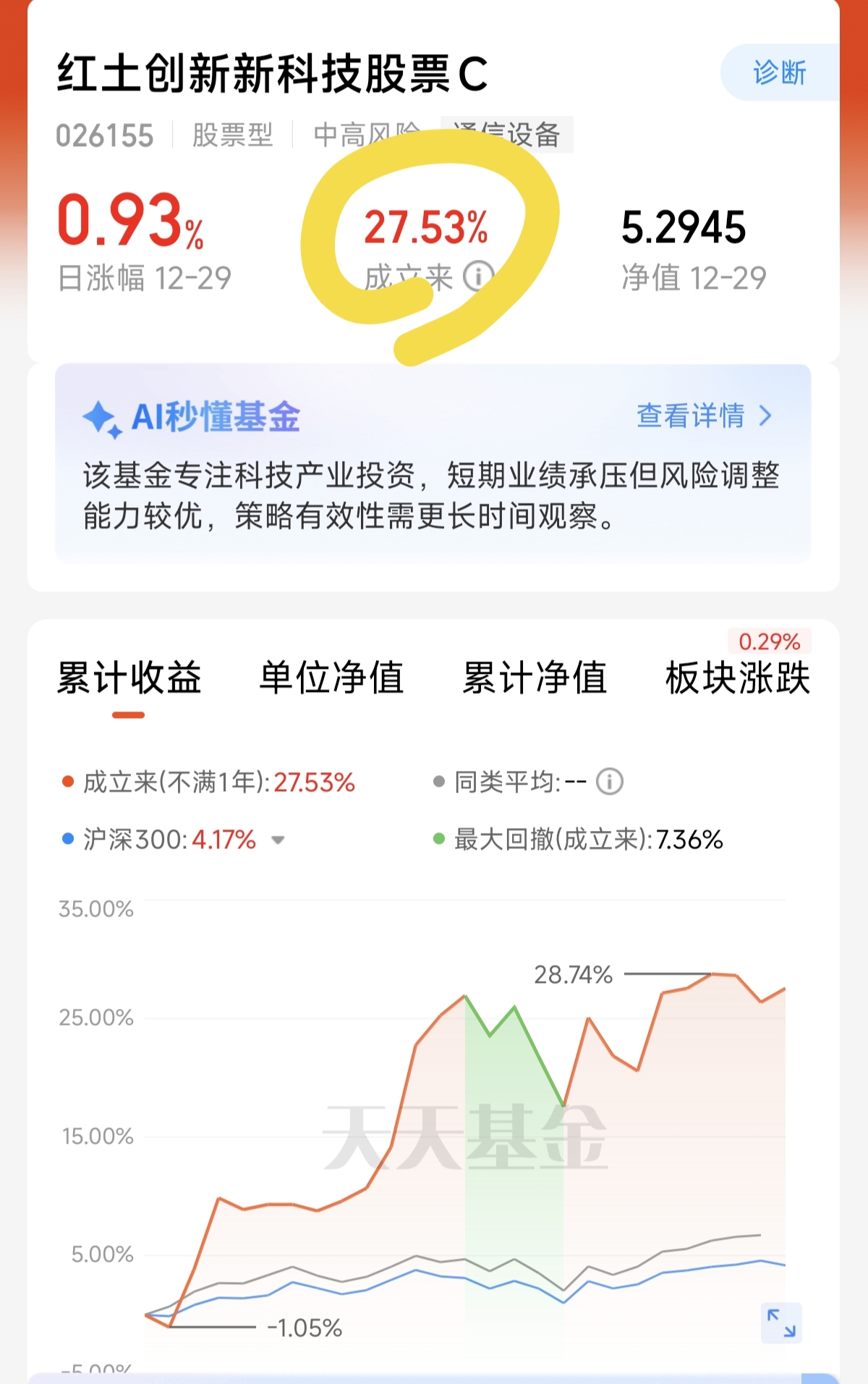 红土创新新科技C(026155)精准立足科技这一核心投资方向,深度贴合国家科技发展战略布局,锚定政策赋能的高景气科技赛道,在政策红利的持续释放中捕捉产业成长机遇,交出了亮眼的投资答卷,成立以来收益率更是斩获27.53%,用实打实的业绩印证了紧跟国家科技部署、掘金政策红利的投资有效性。