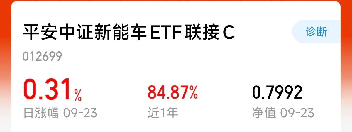 $平安中证新能车ETF联接C$ 今天涨了0.31%,非常出色。