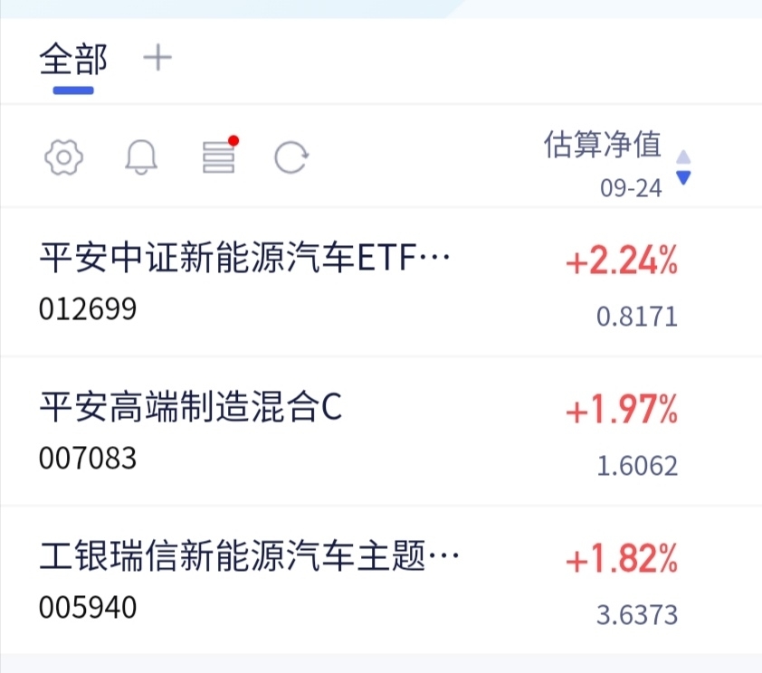 新能源汽车很厉害,拉升不少了。$平安中证新能车ETF联接C$ 最新估值上涨了2.24%,表现非常厉害,妥妥大肉啊,现在新能源汽车还有需求,希望再接再厉。