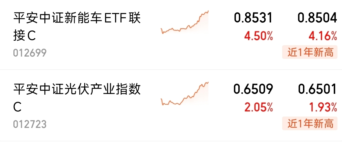 $平安中证新能车ETF联接C$ 今天涨了4.16%,非常出色。