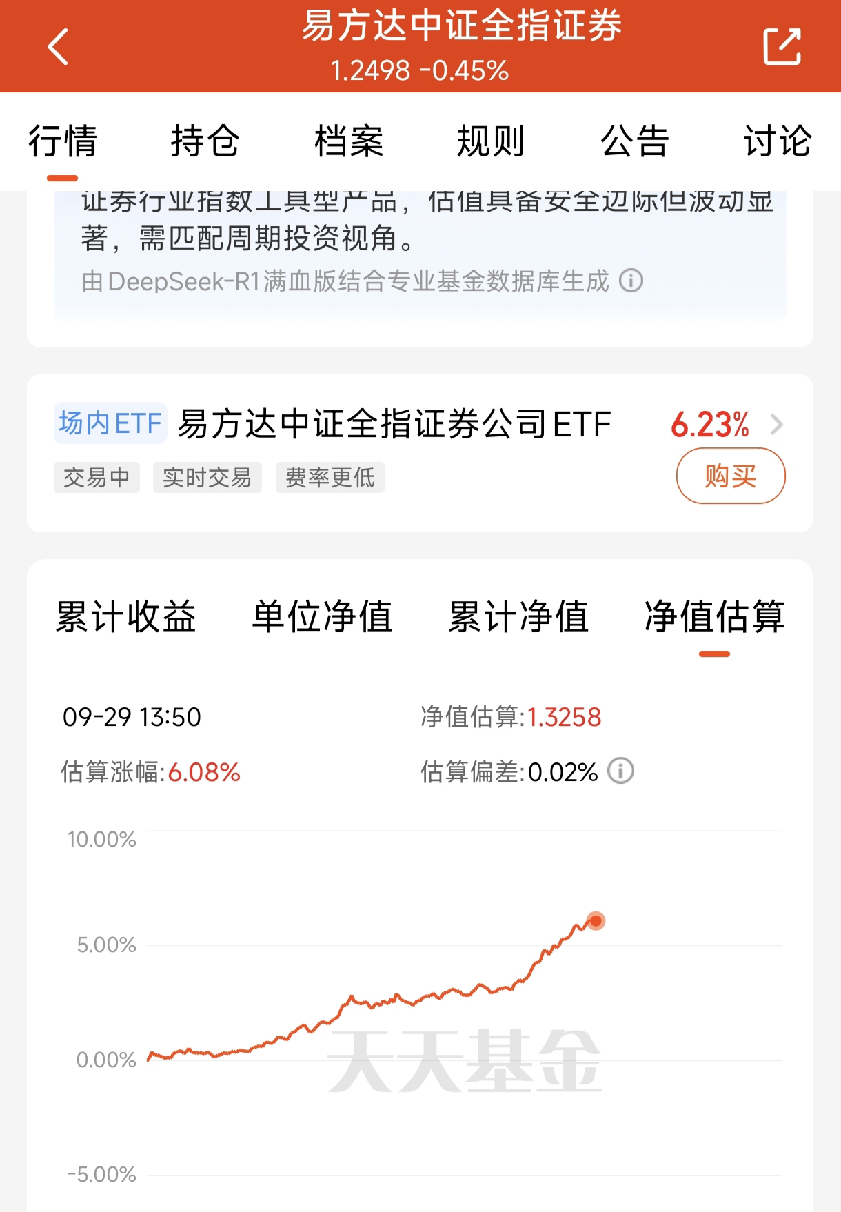 兄弟们,你们猜今天带领大盘上涨的是哪个板块?我真的是没有想到,券商竟然突然火了$易方达中证全指证券公司指数(LOF)C$ 。在他的带领下,今天大盘一路上行,市场交易很活跃。券商业绩进入上升的通道,经过前期的调整之后,这次也迎来了一波补涨的行情,目前这一个估值上涨5.48%。看好今天晚上很好的收益。