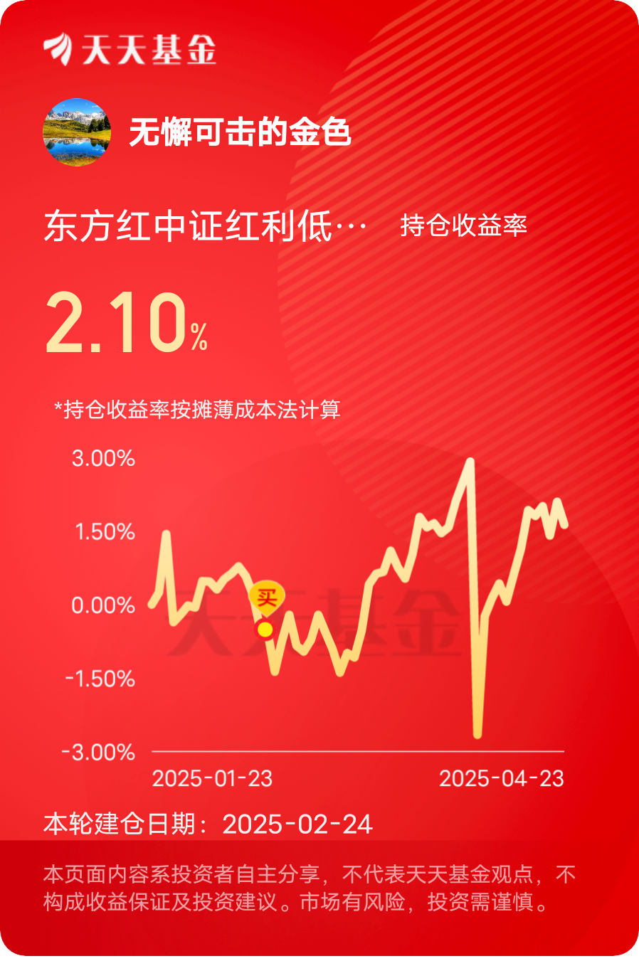市场依然有所震荡,相比下来,红利表现依然很给力,无论是近期的业绩增长还是长期的价值,都是相当不错的,继续加仓$东方红中证红利低波动指数A$ #晒收益#