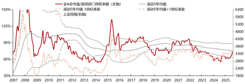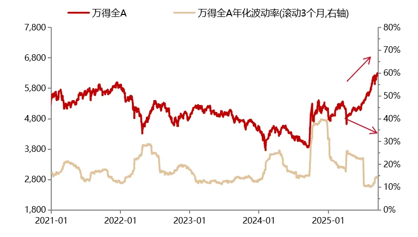 经济平稳期,风险重定价。当前宏观经济总体保持平稳运行,三四季度实际增速或温和放缓。国内经过结构性调整,债务压力与重点领域风险逐步化解;海外方面,关税风险趋于明朗,贸易多元化提升抗冲击能力,出口韧性得以验证。政策层面预计延续底线思维,重心向“十五五”规划倾斜。面对人口老龄化、工业化与城镇化后期等结构性挑战,未来突破路径聚焦两大方向:一是以科技创新提升全要素生产率;二是通过出海战略突破增长瓶颈,实现价值链升级。 股票资产吸引力提升,等待盈利接力。政策高度重视资产价格稳定,通过引导险资、汇金等中长期资金入市,有效增强了市场稳定性、降低波动率,进而显著提升夏普比率,驱动机构与居民资产配置向权益倾斜。杠杆资金、游资及私募等是当前活跃市场的主要力量,“存款搬家”所蕴含的庞大潜力,更为A股市场打开了增量想象空间。历史上A股在ROE下行周期中亦曾出现牛市,但可持续的慢牛行情需要基本面支撑。 一、宏观经济 下半年宏观经济平稳运行,三四季度增速或温和放缓。上半年受“抢出口”和需求前置等因素推动,经济表现好于预期,但这也导致下半年经济增长面临一定的压力。在内需与外需共振影响下,7-8月数据显示出经济数据回落特征较为明显。在当前政策保持底线思维的背景下,预计四季度经济增速或延续温和回落态势,但全年经济增长目标压力不大,下半年达到4.7%的GDP增速即可实现。 图:下半年GDP实际同比增速达到4.7%即可完成全年目标 数据来源:Wind,东方红资产管理,2025年8月后的数据为预测值 尽管基本面仍偏弱,但风险下降是今年资产定价的重要宏观背景。国内方面,近年来我国顶住内外压力,坚持推进一系列艰难却必要的结构性调整,系统性风险有效压降。房地产对金融体系和财政的连带冲击正在逐步消解,随着占比的下滑,地产降幅对固定资产投资、对经济的拖累效应下降。2024年11月,财政部自上而下直接增加10万亿地方化债资源,不仅缓解了地方政府债务压力,也间接改善了私人部门现金流,流动性压力得到进一步纾解。 图:中国债务压力有所化解 数据来源:Wind,东方红资产管理 海外方面,美国重启降息,全球流动性保持宽松。美国经济增长虽有所放缓,但衰退风险总体可控。预计美联储从9月起至明年将累计降息幅100-150个基点 ,同时“大美丽法案” 推动新一轮财政扩张,“宽货币+宽财政”有助于支撑经济软着陆。 关税压力可控,非美经济体支撑外需韧性:4月美国所谓“对等关税”以来,中国出口增速持续超预期,成功通过外部压力测试。其背后原因主要包括(1)贸易多元化取得进展,对美市场依赖度降低,同时欧盟、非洲等非美经济体对外需形成有效支撑;(2)企业持续优化区域布局,2018年以来海外产能配置日益完善,抗风险能力显著增强。 图:非美市场出口有效对冲了对美出口下滑 数据来源:Wind,东方红资产管理 展望四季度,基本面亮点或体现在物价增速合理回升。“反内卷”治理展现出较强的政策决心。7月1日中央财经委会议明确要求纵深推进全国统一大市场建设,标志政策从顶层设计步入部委联动执行阶段。目前,发改委、工信部、环保部及市场监管总局正积极制定并落实相应举措,协同治理格局正在形成。 后续政策预计将更加侧重与中长期目标衔接。由于当前产能过剩的光伏、新能源汽车等行业本身也属于政策鼓励的“新动能”,未来供给侧调控仍将谨慎微妙、有保有压;需求端预计不会重现2016-2018年棚改货币化或PPP大规模扩张的老路,而是更多依托“两重两新”、城市更新等中长期方向。适逢“十五五”规划编制窗口期,后续产业政策与内需措施,预计都将更加注重与中长期规划结合。 科技有望成为“十五五”的主线,需重视新型工业化。近期动向显示,科技与制造业的核心地位在“十五五”期间将从“制造强国”向“科技强国”深化升级。 “基本实现新型工业化”是2035年远景目标之一,也是“十五五”时期的重点任务,对应着“十五五”规划的科技主线。高质量发展对科技创新提出了更高要求,近年来高层对科技工作的部署也已从技术攻关逐步延伸至应用推广与产业辐射。 今年以来,以AI为代表的新技术为市场注入强心针,中国在这方面具备后发优势——超大规模市场与应用端的创新环境。作为全球第一大工业国,中国完善的制造业体系为人工智能技术提供了广阔的应用空间和丰富的试错场景,这是许多国家难以比拟的优势。历史经验表明,中国在互联网、移动互联网等技术上虽非最早突破者,却凭借市场体量、政策支持与工程师红利,最终实现了全球市场份额的提升和产业话语权的增强。在人工智能时代,中国仍可延续“市场促应用、应用反哺技术”的路径。 图:中国制造业快速发展,推动了工业机器人安装量世界领先 数据来源:Wind,东方红资产管理 在人口老龄化、工业化与城镇化进入后期阶段的背景下,破解当前结构性矛盾有两大方向:其一,依靠科技创新提升全要素生产率;其二,出海正成为突破内卷困境的重要路径。企业通过出海投资,有效整合海外劳动力和资源等生产要素,推动中国经济由以往世界工厂模式下的“打工人”,向全球市场中“投资人”角色转型,从依赖劳动力成本优势转向依靠资本和技术增值获取回报。 二、市场展望 稳定资产价格已成为宏观调控重要