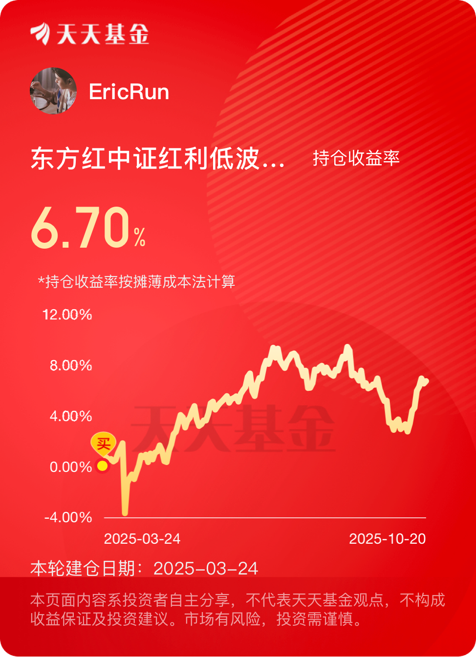 这基最近一个月3%+跑赢了业绩比较基准,甚至同类均值都是负数,实在太优秀了 $东方红中证红利低波动指数A$ #晒收益#