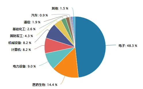 科创综指(000680)聚焦于科技创新与高端制造领域,翻开科创综指的行业图谱,电子(48.3%)、医药生物(14.4%)、电力设备(9%)、计算机(8.2%)、机械设备(8.2%)构成核心板块,前五大行业占比 88.1%。相比传统宽基指数,科创综指(000680)在行业上更加集中于战略性新兴产业,与国家政策导向和未来产业发展保持一致。