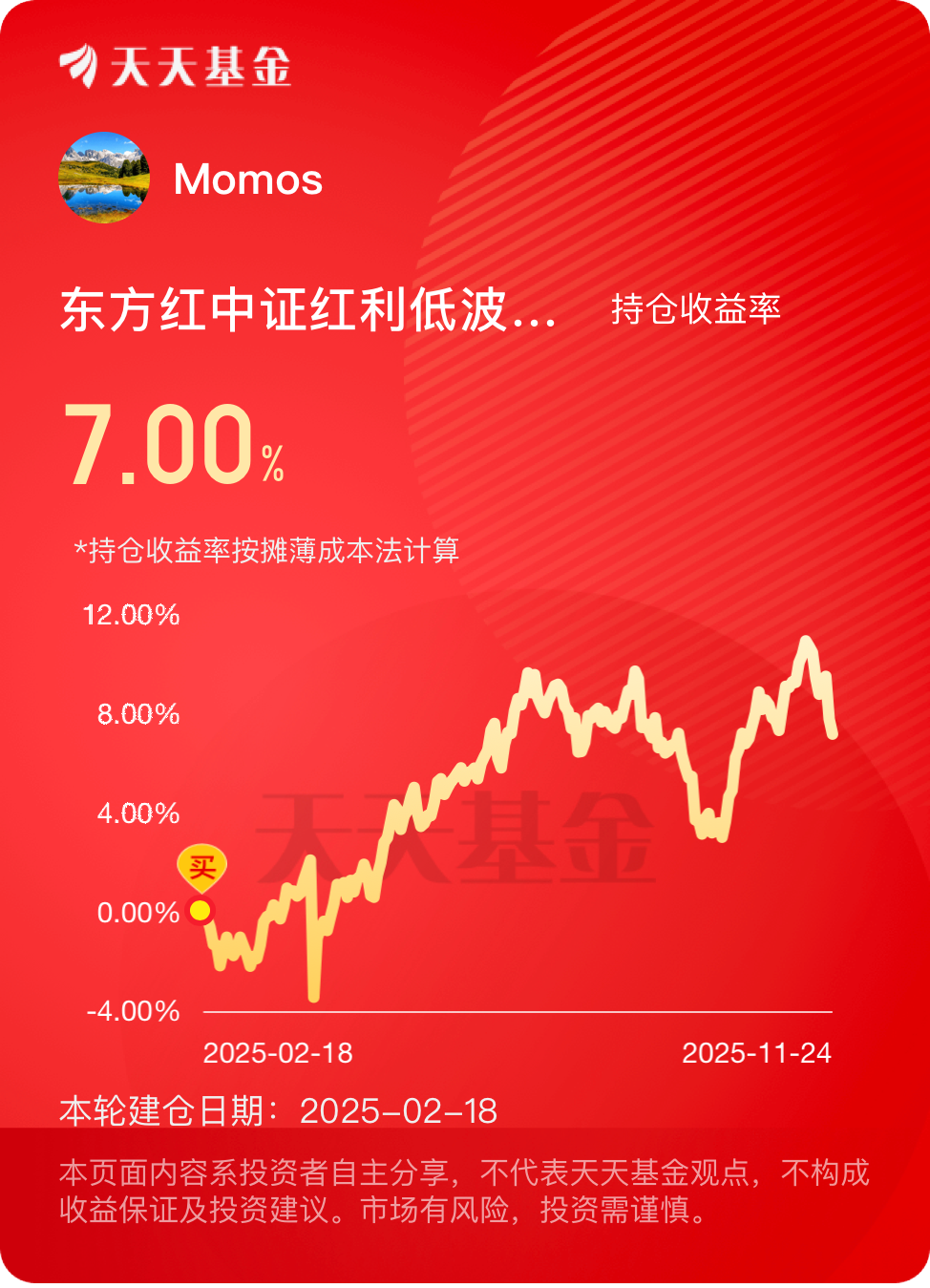 市场好起来了,我继续布局红利低波,行情还没结束,看好长期机会,坚持定投$东方红中