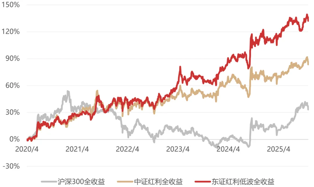 数据来源:Wind,自2020.4.21(东证红利低波指数发布日)至2025.11.21,东证红利低波全收益、中证红利全收益、沪深300全收益指数代码分别为921446、H00922、H00300,指数数据仅供参考,不代表未来及本基金业绩表现。
