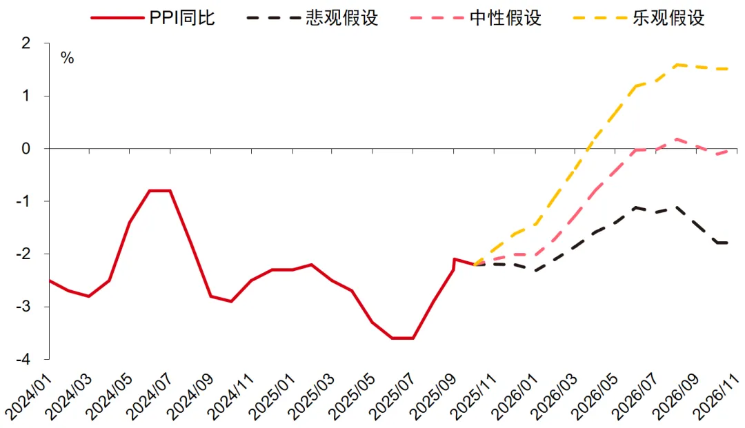 数据来源:Wind,东方红资产管理,其中2025年12月后为预测值;中性假设:内需表现平稳,反内卷平稳推进,原油等外部输入性因素变化不明显