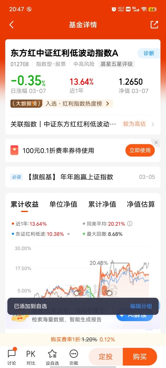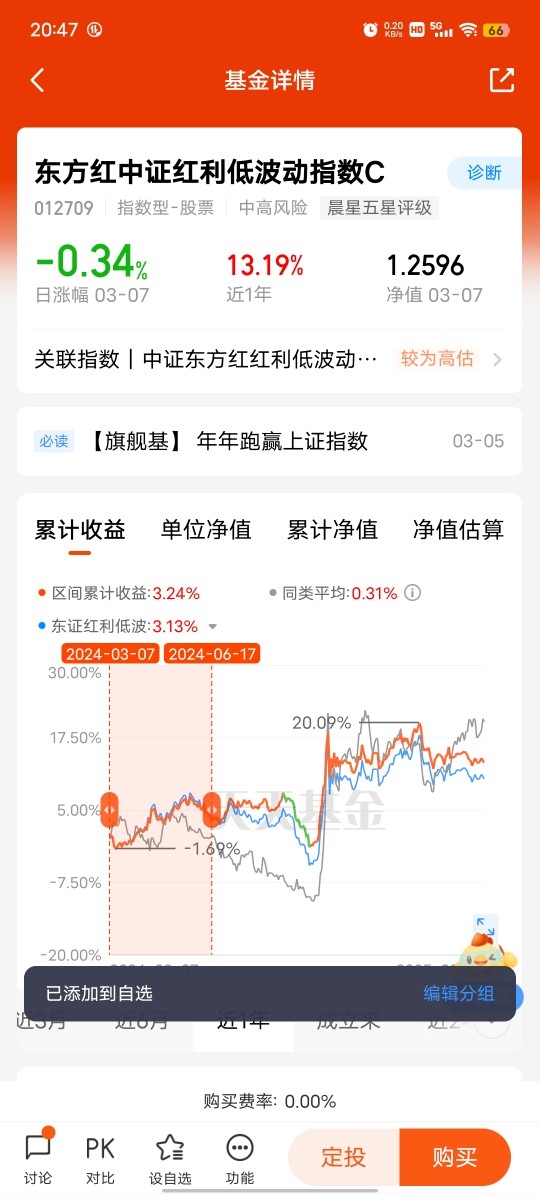 #天天基金调研团#$东方红中证红利低波动指数C$