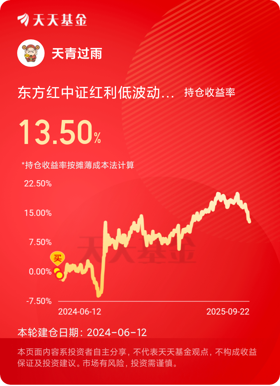 银行股今天一枝独秀,我再加点仓$东方红中证红利低波动指数C$ #晒收益#