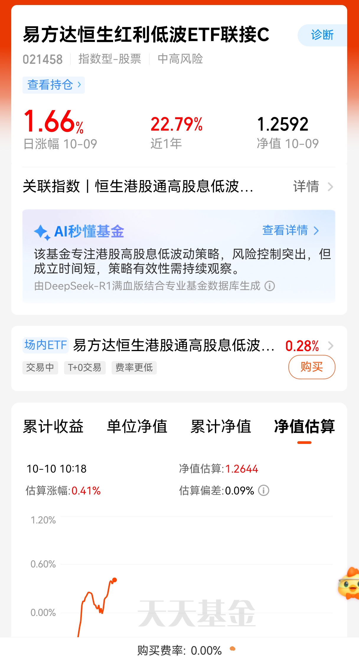 目前红着的,近六个月涨幅22.68%,业绩也是很不错的,防守资产的必要性,科技主线配置之余,保持一定仓位的红利,而且美联储降息背景下,港股整体更有机会,弹性也是很不错的。
