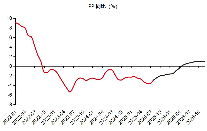 PPI方面,原油价格年内继续承压:2025年9月EIA预测,2025年全球原油供应日均1.0554亿桶,需求日均1.0381亿桶,日均过剩量达173万桶,较8月EIA预测的过剩量继续增加,主要是由于尽管EIA上调了对原油的需求预测,但OPEC+亦开启了165万桶/日的灵活增产窗口,导致年内面临更大的供应过剩压力,但由于2024H2的原油价格基数走低(2024Q2/Q3/Q4布伦特原油均价分别为84.87/80.15/74.63$/桶),因此2025H2原油价格的同比降幅相较2025Q2有望明显收窄。煤炭价格主要取决于政策层面的出台情况及执行力度,且在控量稳价的导向下,生态红线内未建成矿井、安全和环保不达标(如瓦斯突出和冲击地压矿井,灭火工程和手续不全)、资源枯竭老矿等产能可能会被强制退出,在供给端扰动持续加大的背景下,预计2025Q4煤价将表现偏强。尽管建筑用铝型材和光伏用铝边框需求自2025年6月以来表现偏弱,但得益于船舶/电动机/机械设备等工业材需求较好,电解铝价格稳中有升,年内有望持续偏强。根据SMM预测,2025/2026年全球主要矿山项目的铜精矿供给增量分别为19.6/57.3万吨,ESG和资本开支等因素持续对新投产和扩产矿山项目的供给释放形成阻力,而资源品位下降,开采成本上升则对存量矿山项目的供给形成阻碍,但铜冶炼产能持续快速扩张,因此ICSG的调查表明2025H1全球精炼铜市场仍过剩25.1万吨,2025H1全球铜矿山产量同比增长2.7%,全球铜精炼产量同比增长3.6%,后者能更快增长,主要得益于铜冶炼厂消耗港口及内部的铜精矿库存,但到7月末时,港口铜精矿库存已经降至历史低位,因此铜冶炼厂需要补库铜精矿,这也是8月以来铜精矿价格上涨的主要原因,而由于矿山的铜精矿供给有限,铜冶炼厂的精炼铜产量也无法像2025H1那样高增,同比增速会下行,因此电解铜的价格也同步上涨,目前港口铜精矿库存水位仍然不高,铜冶炼厂仍有进一步补库铜精矿的需求,而这将推动铜精矿和精炼铜价格上涨,由于铜自身还具备一定的金融属性,美联储开启降息周期也将有利于铜精矿和精炼铜价格上涨。政策层面推动钢铁、石化等产能过剩行业控量稳价也有助于PPI环比修复:2025年1-8月国内粗钢产量累计同比减少1,960.29万吨,年内粗钢产量可能持续同比减少;2025年6月,工信部和发改委联合启动针对投运时间超过20年的老旧化工装置的全国性摸底评估,而投运时间超过20年的炼油产能占比约30%,其中约一半因投运时间超过30年需要淘汰退出,剩余一半则需要更新改造。此外,部分产能过剩行业的产品价格过去较长一段时间持续下行,企业利润和新建及扩建产能的ROIC都较差,因此行业内已出现自发的供给增速下降:如基础化工行业的在建工程同比增速(反映潜在的新增供给压力)在2022Q4达到2012Q3以来的最高值,对应化工行业新一轮资本开支高潮,但此后即震荡走低,2025Q1在建工程变为同比下降,为2018年以来首次,2025Q2同比降幅进一步扩大,这对应化工行业的供需格局也在逐渐边际改善,产品价格下行压力边际减轻。领先9个月的OECD综合领先指标对PPI月度同比有较好的指示意义,前者自2025年年中已开始反弹。因此预计后续PPI同比有所回升,2025Q4的PPI同比中枢会由2025Q3的-3%升至-2%,但短期内快速回正难度仍较高。