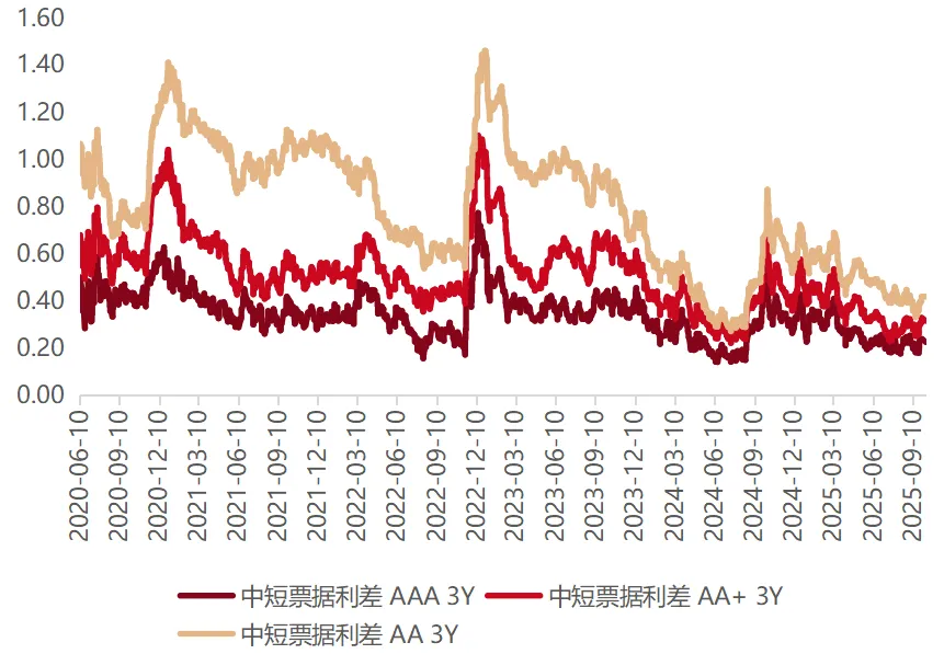 流动性与政策方面,三季度央行持续呵护资金面,截至10月9日累计投放买断式逆回购5.3万亿元,资金价格除跨季时点外均维持偏低位置。此外,央行三季度例会重申“落实落细适度宽松的货币政策”,债券市场短端品种确定性仍较强。但三季度两份重要政策文件出台对债市形成进一步冲击,一是财政部、国家税务总局公告8月8日起恢复征收金融债等利息收入增值税,新券预计较老券票面上行幅度约5-10bp;二是证监会发布《公开募集证券投资基金销售费用管理规定(征求意见稿)》,公募债基赎回条件收紧或改变银行及理财机构对公募债基的定位与配置需求,机构的脉冲式赎回行为已成为市场核心短期关注风险变量,后续政策落地节奏及影响需持续跟踪。
