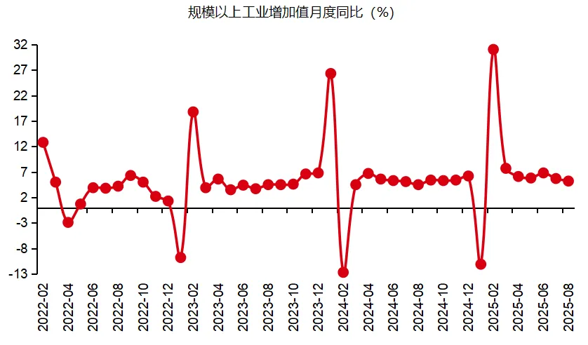 根据2025年7-8月经济数据及9月以来的高频数据,预计2025Q3国内实际GDP同比增速在4.8%左右,较2025Q2的5.2%或有所回落,主要是由于三方面原因:其一,由于5月618购物节提前,国补及渠道和商家补贴叠加,5月社零以透支6-7月为代价换取高增,且对国补资金的过快消耗导致6-7月各地以旧换新补贴力度大幅退坡,而第三批690亿元国补资金直到7月下旬才开始下发,受此拉动,尽管8月名义社零同比增速较7月下降0.3pct至3.4%,但扣除价格因素后的实际社零同比增速较7月上升0.2pct至4.1%。其二,2025年下半年以来政策层面以控量稳价的思路整治内卷式恶性竞争,加之2025Q3出口同比增速因美国进口需求延续4月所谓“对等关税”政策后的弱势表现而相较2025Q2有所下行,规模以上工业增加值同比增速7-8月连续下降。其三,尽管截至8月超长期特别国债和新增专项债发行进度都已分别达到77%和74%,但不含电力的基建投资累计同比增速自5月起即单边下行,1-8月仅为2%,而2024年同期高达4.4%,因此有相当规模的超长期特别国债和新增专项债资金并未实际落实到项目上,这可能有政策层面通过调控对基建投资的资金拨付以熨平经济短期波动的考虑。