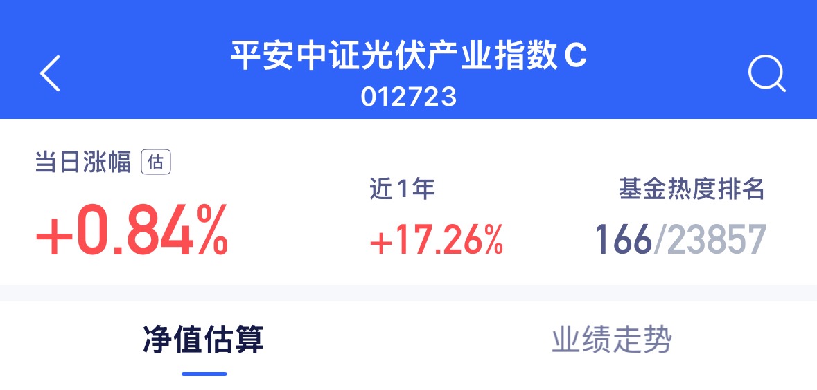 $天弘中证光伏产业指数C$最新估值+0.66%,也还可以