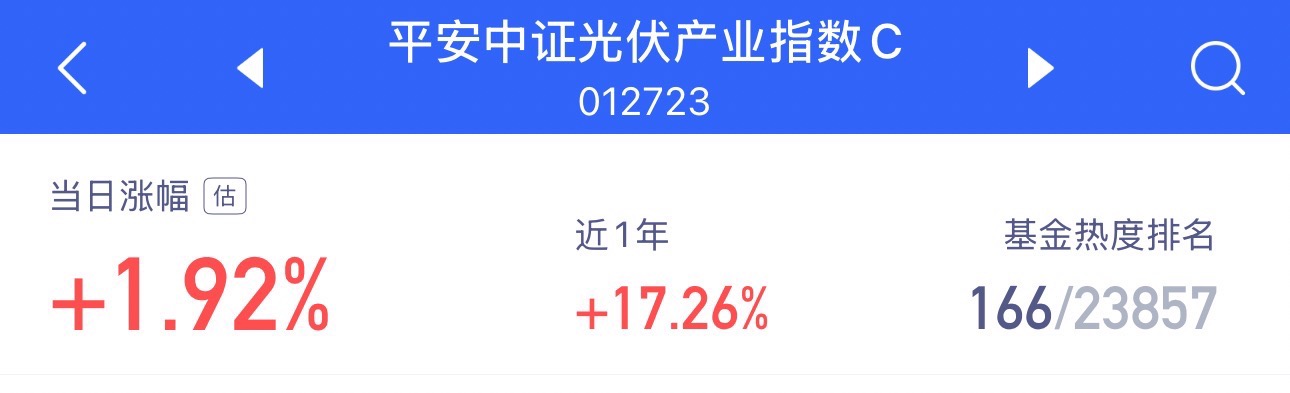 $平安中证光伏产业指数C$今天估值上涨1.92%