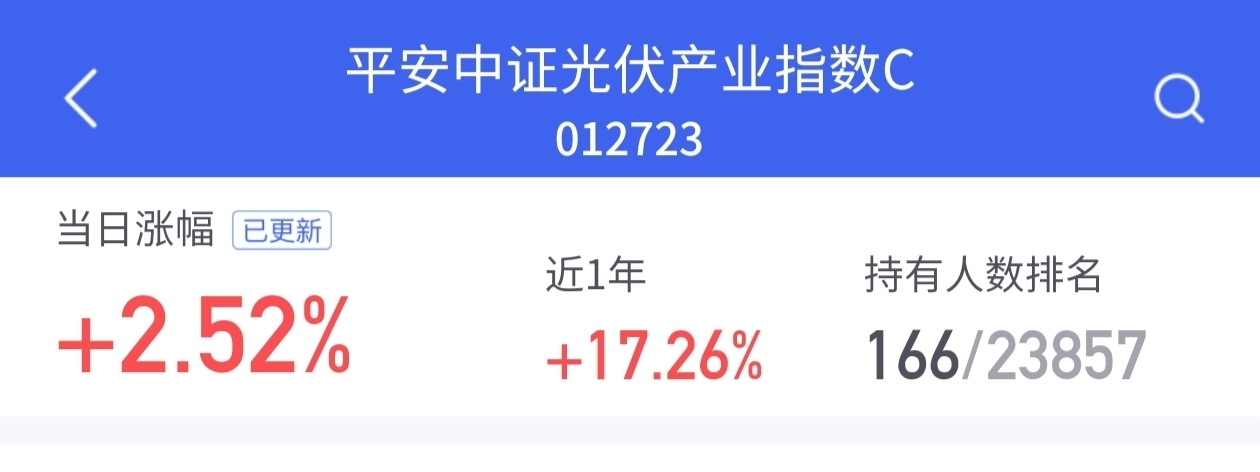 $平安中证光伏产业指数C$ 今晚净值+2.52%,盘中虚惊一场,好在最后还是大涨!