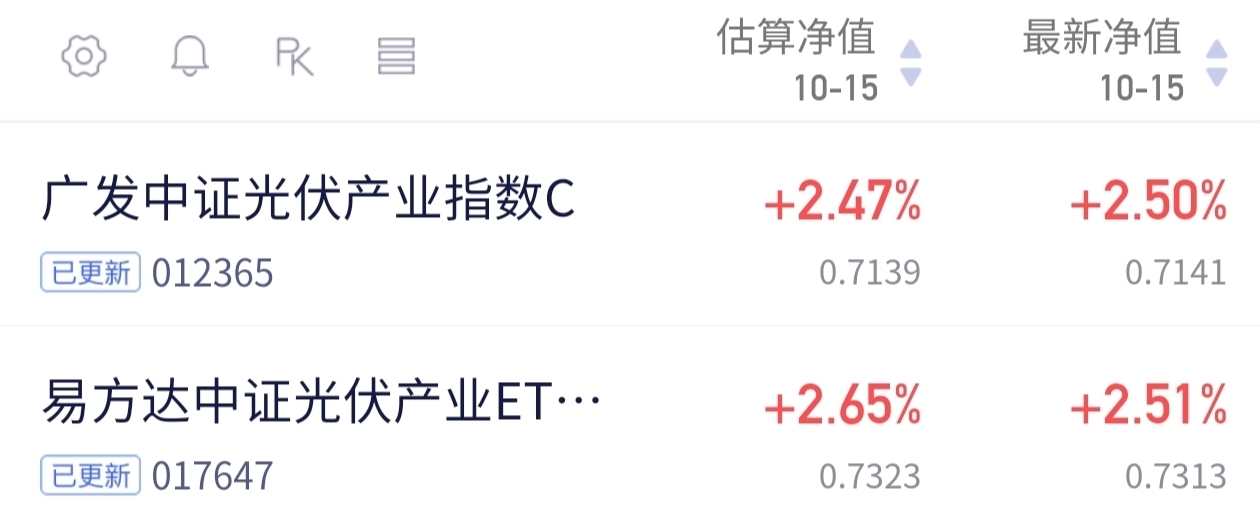 $广发中证光伏产业指数C$ 净值+2.50%,不错