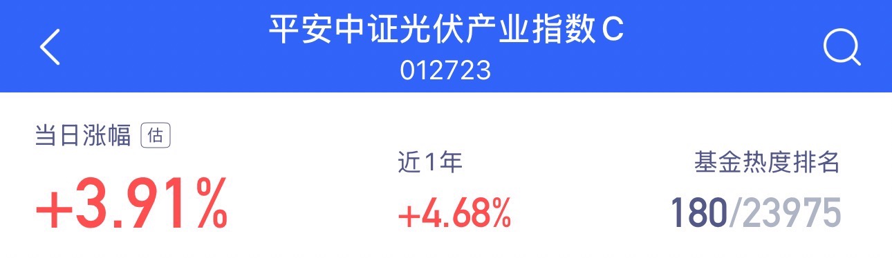 $平安中证光伏产业指数C$今天估值上涨3.91%