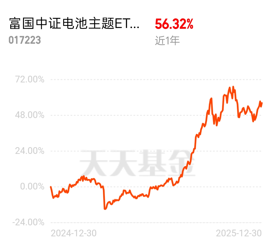 游戏娱乐和电池制造,一个满足精神需求,一个驱动物理世界。国泰中证动漫游戏ETF联接C偏向内容消费,富国中证电池主题ETF联接C则押注实体产能。后者近1年涨56%、近2年57%,在硬科技赛道中表现稳健。当前电池产业链排产回暖,估值处于相对低位,结构性机会渐显。若你希望配置不同属性的成长资产,富国这只提供了制造端的清晰选项。$富国中证电池主题ETF发起式联接C$