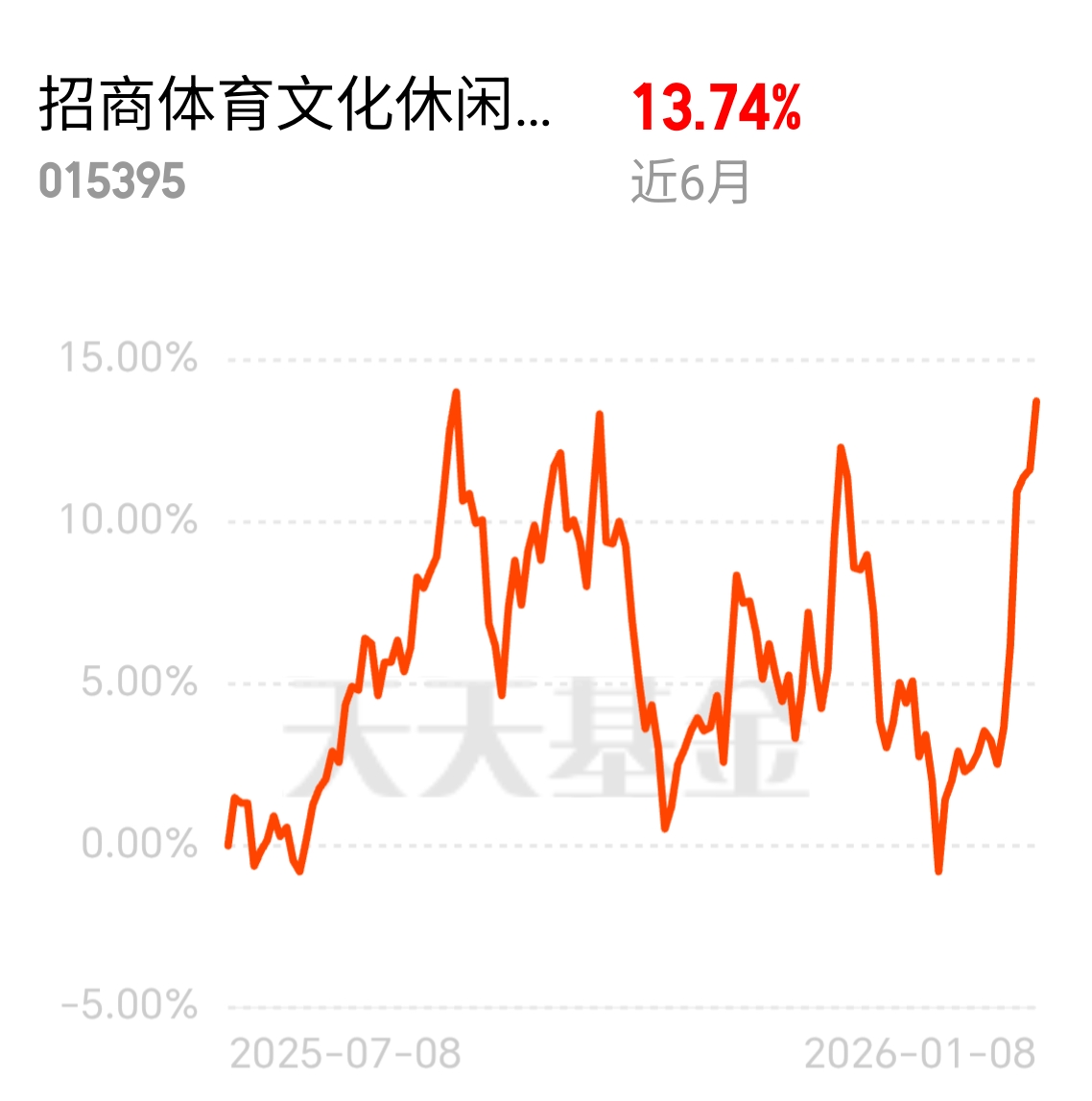 运动康复、健康管理融入体育产业,“体育 + 健康” 新模式受追捧。招商体育文化休闲股票 C 昨日涨 1.90% 近 6 月 13.74%,紧跟健康消费趋势,分享跨界融合的市场红利。$招商体育文化休闲股票C$