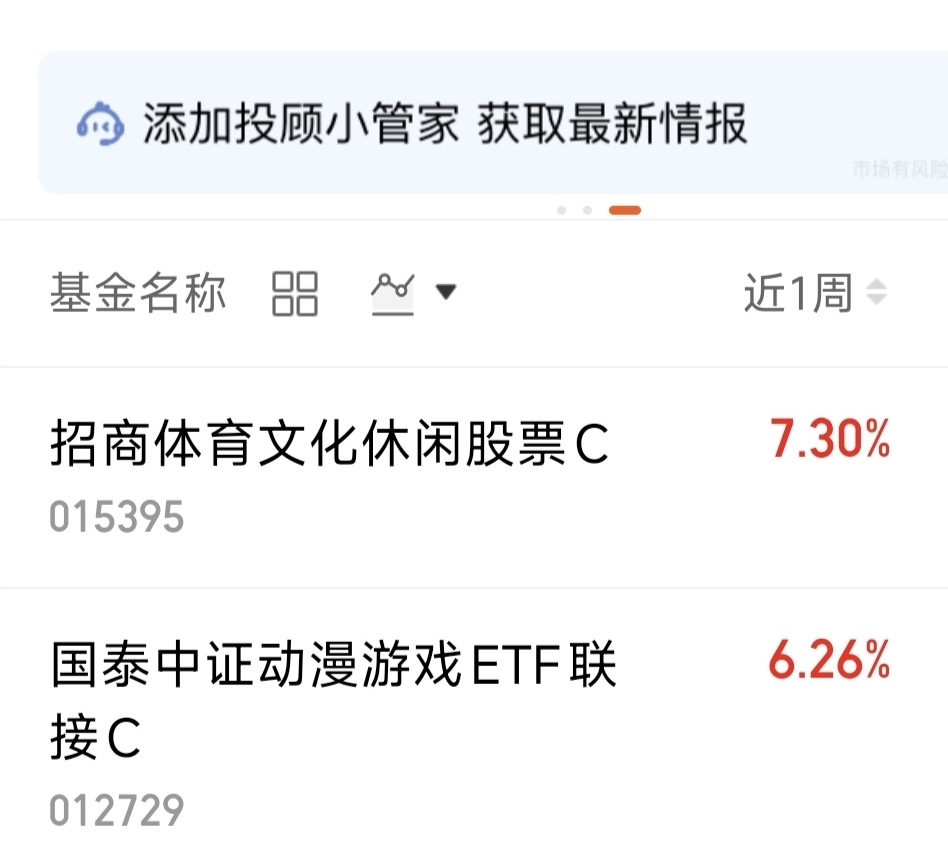 $招商体育文化休闲股票C$ 近一周涨了7.3%!主动的混合基金!聚焦AI应用,传媒文化等方向!