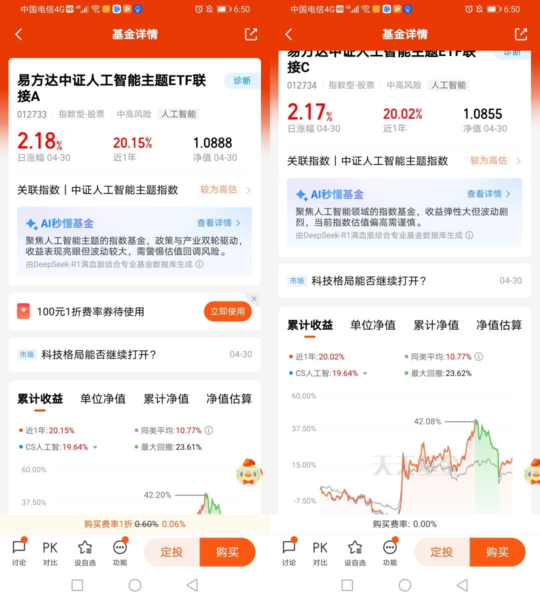 #【万元奖品】解读五一见闻,挖掘财经密码# 我的消息人格是科技潮人。在景区的人山人海中,我看到了科技神奇力量:Al剧场灯光盛宴变化无穷,Al机器人跳舞唱歌、制作饮料让人倍感新鲜,等等。Al元素在渗透,Al赋能文旅消费日新月异,给我们带来新奇体验,让我们再回首,回头游;也让消费变化升级,推动了消费潜力的释放。这是Al科技的魅力。今年,国家进一步推进“人工智能+”行动,Al产业链成为经济发展的新引擎,也成为投资的新蓝海。投“基”$易方达中证人工智能主题ETF联接A$ ,能更好地分享科技行业发展的巨大红利。因为易方达基金公司指数基金团队研究深入前瞻,目光敏锐,能及时发现科技行业投资机会,深度挖掘科技领域投资标的,持续稳定地回报持有人。$易方达中证人工智能主题ETF联接A$ 成立以来表现优秀,从统计数据看,无论是近一年还是近三年的性价比都是很高。因此,为了更充分地分享Al科技行业发展的红利,申购持有$易方达中证人工智能主题ETF联接A$ 是很好的选择!