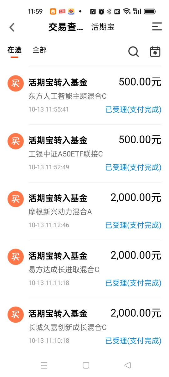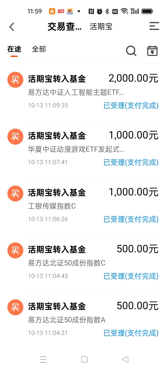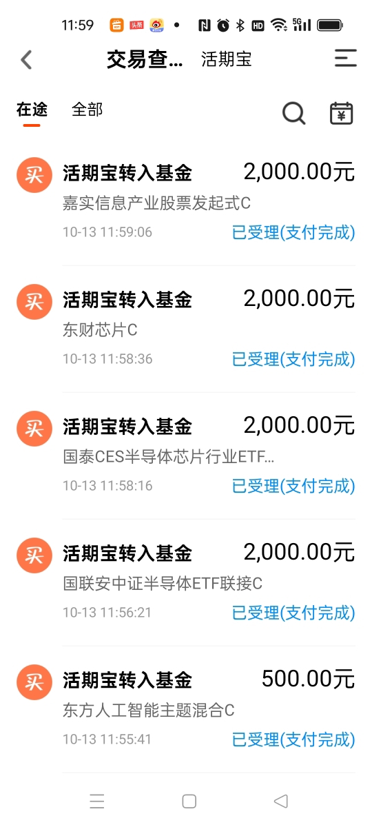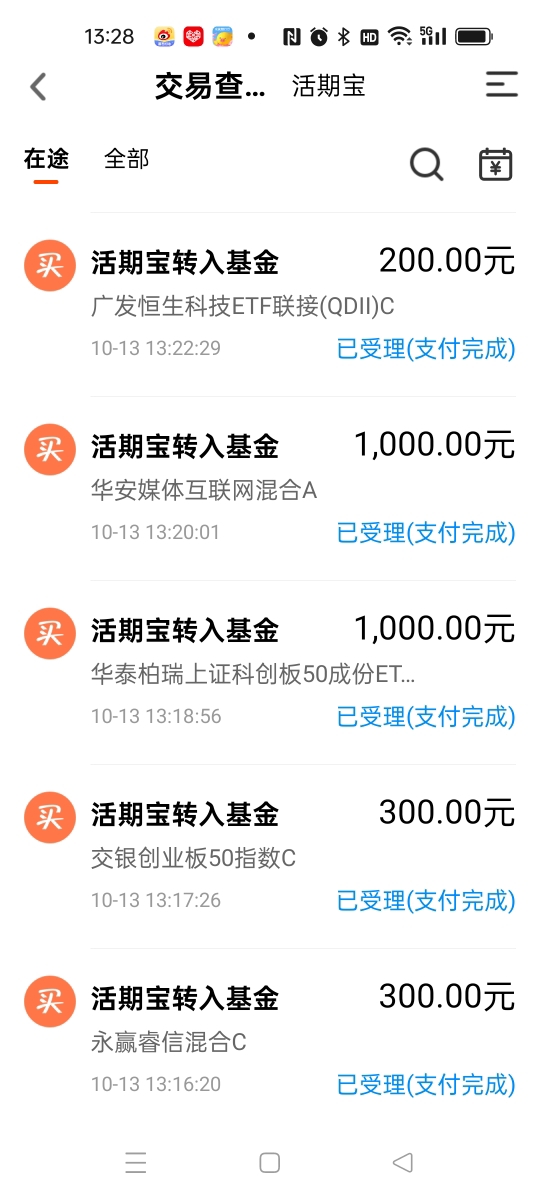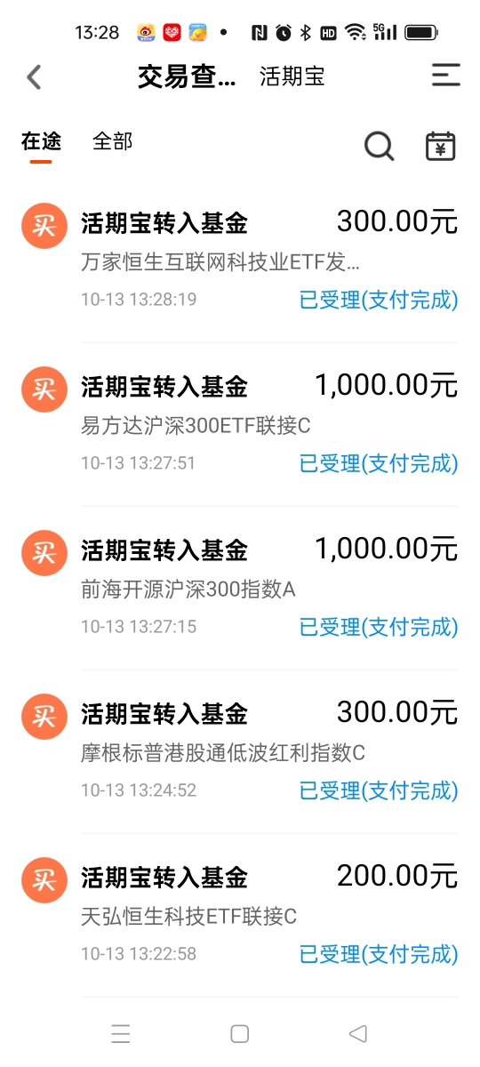 各位投资者粉丝们好,今天是10月13日周一的交易日。 上周五的大跌 可有啥办法呢?在投资的路上总会经常碰到的,还有各类“黑天鹅”的大事件发生,也会让人被劫一次,这就是投资的生活。 那么今天为什么又会被劫? 首先带头跌的就是中芯国际、佰维存储的股票,两融结算率在上一个交易日被多家券商将结算率调为零。但是上周五跌完后,折算率又被调回来了,可是投资者的钱确实受损了,欲哭无泪和已泪哭干…… 呵呵!那这个是啥动作呢?翻手为云,覆手为雨!给巨大的波动…… 上周五夜间美股又下挫,幅度为今年4月8日以来的最大,纳指会跌3.56%,纳指金龙指数也跌6.1%,新加坡A50期指又跌近5%,老天呀!屋漏偏逢连夜雨呀! 那我们该怎么去应对?也是大家最想知道的事情。 那么从去年10月开启的这波牛市行情,也是中途出现几次大跌的震荡,但是后面又都上来了,这就是慢牛上涨,又快速跌的调整,让人摸不到头脑。 如果今天大幅度低开也是正常的,给各位投资者提个醒哦。我为啥上周五的下午兑现了一些基金筹码,也是看到了这个有调整信号,所以一部分盈利先落袋为安,然后等这周的机会再买进去,这也是我这些年一直在说的高抛低吸操作,也是非常难的操作手段。 不过大家也别太怕了,这里的震荡也是属于上涨途中的大洗盘,顺便打出一些获利的筹码来多空换手。 所以本周的调整也许会一步到位的,大家如果是重仓的投资者,就没有必要再今天去割肉了,相反买进去的机会在到来,看我的操作就可以明晓,谨作参考哦。