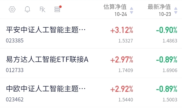 $平安中证人工智能主题ETF发起式联接C$ 今日估值上涨3.12%