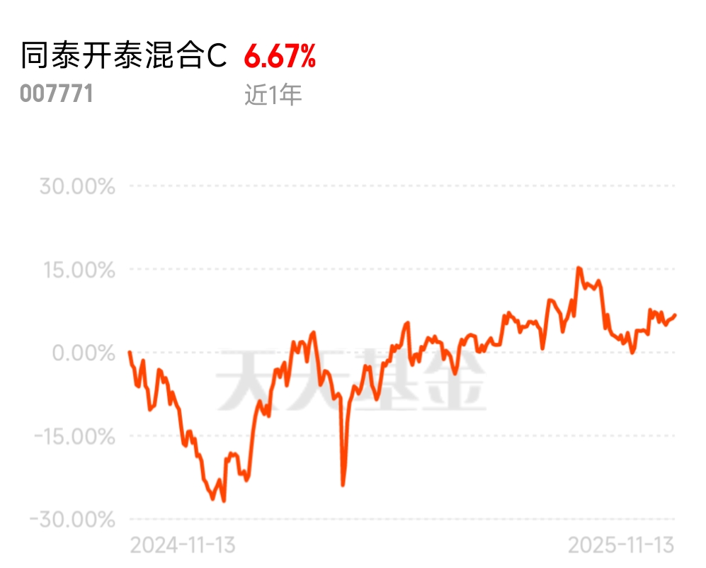 暴跌中才发现同泰开泰混合C(007771)的好——跌得少,让我心态平稳很多。它投