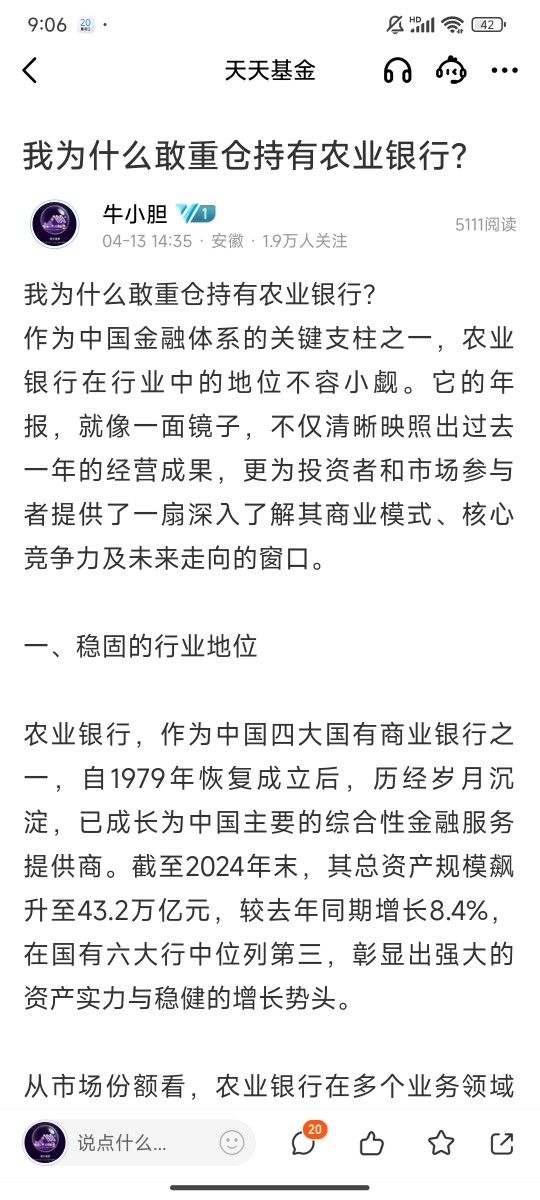 回顾过去,我曾撰写《我为什么敢重仓农业银行?》一文,当时不少投资者对此嗤之以鼻。他们认为农业银行涨幅已高,转而倾向于低位的科技股。然而,市场走势往往出人意料,现实给了这些投资者一记“响亮的耳光”。农业银行等四大行的股价持续攀升,不断刷新历史记录,让看空者大跌眼镜。这一经历深刻地揭示了投资中的一个重要原则:绝不能仅仅因为股票涨幅大就盲目卖出,也不能只因股价跌得多就贸然买入。投资决策不应被短期的价格波动左右,而要基于对股票背后公司的深入理解和对其价值的准确判断。