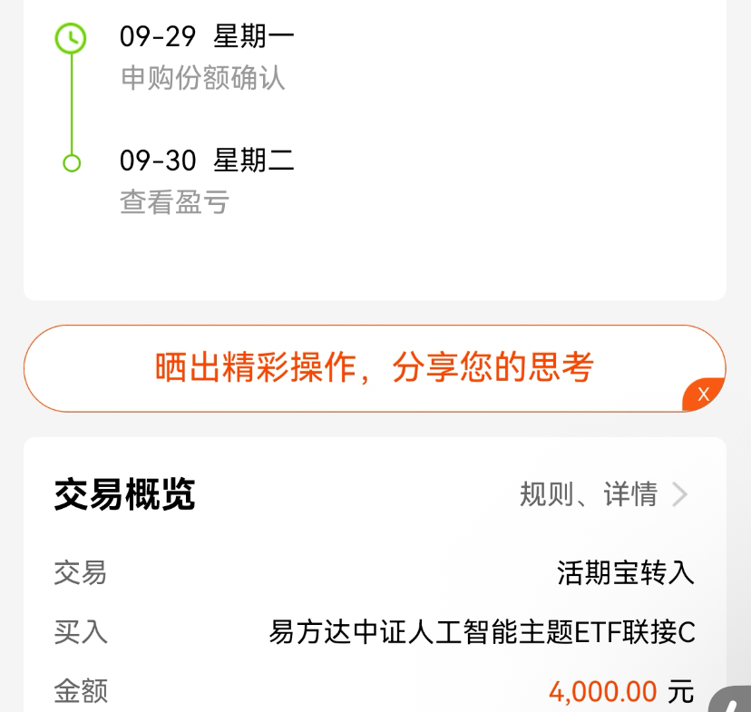 今天股市三大指数集体下跌,大科技迎来一波调整,其中人工智能之前持续上涨,今天终于回调了,打算加仓$易方达中证人工智能主题ETF联接C(OTCFUND|012734)$啦,目前板块轮动加速,但是不改科技主线方向的,如果细分板块踩不准,那就看它一键布局人工智能全产业链吧!$华夏人工智能ETF联接C(OTCFUND|008586)$$永赢半导体产业智选混合发起C(OTCFUND|015968)$$博时上证科创板人工智能ETF发起式联接C(OTCFUND|023521)$$东方人工智能主题混合C(OTCFUND|017811)$$华宝创业板人工智能ETF发起式联接C(OTCFUND|023408)$$广发中证半导体材料设备ETF发起式联接C(OTCFUND|020640)$#特朗普挥关税大棒:药品或遭高关税##9月游戏版号发放 景气度或超预期#
