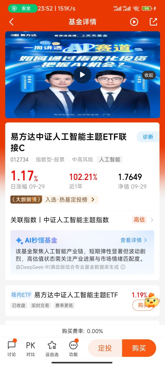 #热点话茬# 我是陷饼派,我看好$易方达中证人工智能主题ETF联接C$ 易方达中证人工智能主题ETF联接C:AI赛道的便捷抓手