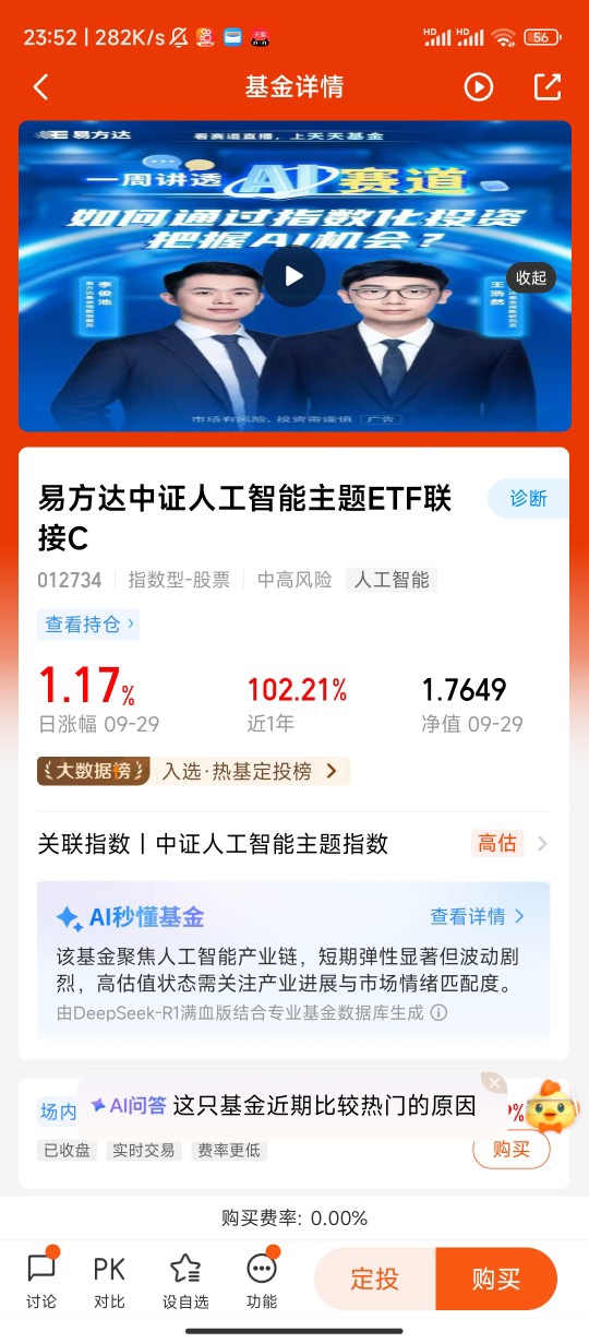 #热点话茬# 我是陷饼派,我看好$易方达中证人工智能主题ETF联接C$ 易方达中证人工智能主题ETF联接C看法