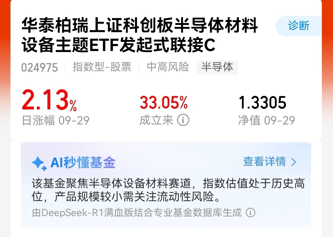 $华泰柏瑞上证科创板半导体材料设备主题ETF发起式联接C$今天估值又涨了1.81