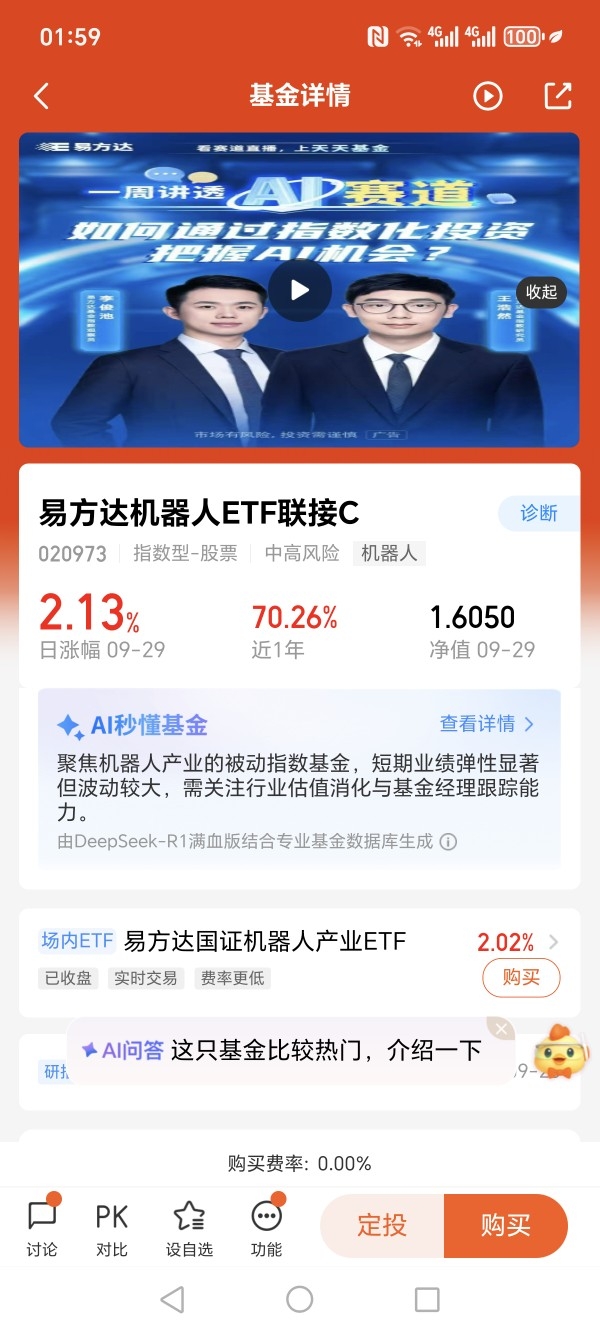 #热点话茬# 我是馅饼派,最近我重点关注人工智能和机器人。我目前重仓的细分赛道是人工智能和机器人,合计仓位约占总投资组合的25%。我看好易方达中证人工智能主题ETF联接C和易时达机器人ETF联接C。人工智能正从技术探索迈向规模化落地,涵盖云计算、大模型、行业应用等关键环节,前者覆盖了产业链核心企业,能够分散个股风险,高效捕捉整体行业红利。机器人则是人工智能的最佳载体。随着老龄化加剧,自动化需求将持续爆发,后者聚焦工业与服务机器人龙头。近期市场回调确实带来压力,但科技成长股的波动往往源于短期情绪而非基本面恶化,我反而视为低位加仓的机会。我相信,坚持定投,保持耐心,才能在科技浪潮中赢得先机。