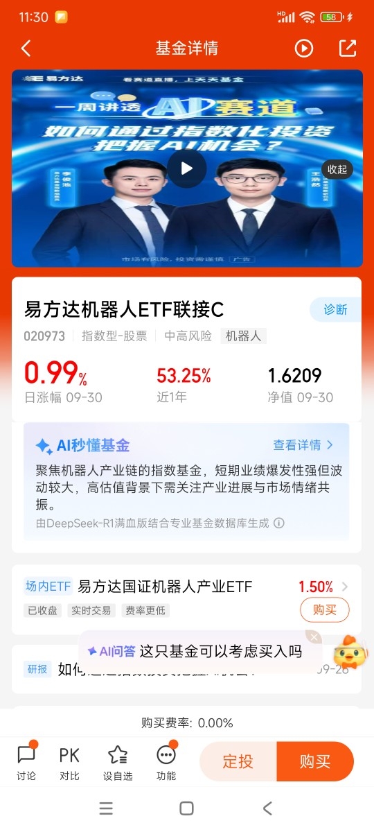 #热点话茬# 我是馅饼派,最近我重点关注人工智能和机器人。科技仓位中,我主要配置人工智能和机器人赛道,总比例约50%。人工智能ETF占30%,机器人ETF占20%,押注“算力+执行端”双主线。前者绑定国内AI芯片、云计算龙头,后者聚焦工业机器人和服务机器人的国产替代,两者都是高增长、高beta的领域。近期回调只是市场情绪扰动,但AI的B端应用和机器人的GPT时刻仍在加速,行业基本面并未恶化。选择这两只基金,是因为它们分散个股风险且费率极低,C类适合短期持有。我通过定投平滑成本,回调反而是收集筹码的机会。短期波动不改长期逻辑,我坚信技术革命带来的回报足以熨平噪音,现在需要的只是耐心。
