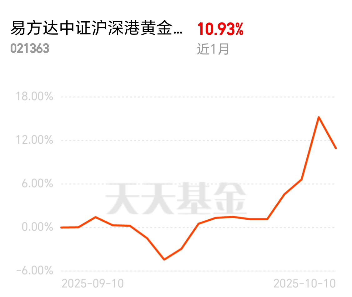 黄金板块最近天天领涨,资金流入特别多,行情热度挡不住。易方达中证沪深港黄金产业股票指数C近1个月10.93%,上车的好时机,别错过了。